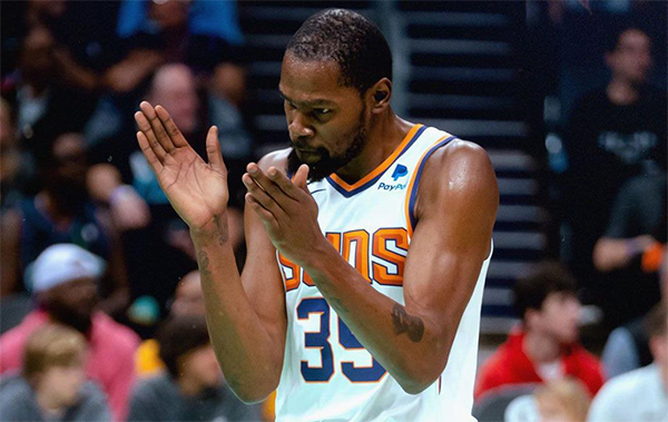 第三节,太阳队这边的领先继续,单节再一次领先了4分,三节比赛,太阳队领先14分。第四节比赛,开拓者这边是发起了凶猛的追分,他们一度将分差追到了6分,而此时前面比赛中基本上划水的杜兰特来了。