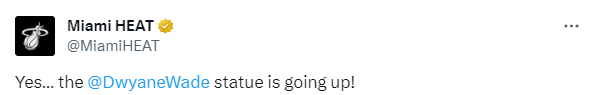 韦德职业生涯13次入选全明星、8次入选最佳阵容、3次夺得总冠军,05-06赛季夺得总决赛MVP、1次得分王、热火生涯总得分21556分队史第一、入选NBA75大球星,成为热火队史第一位被热火选中并入选名人堂的球员,将在今年拥有一座雕像。