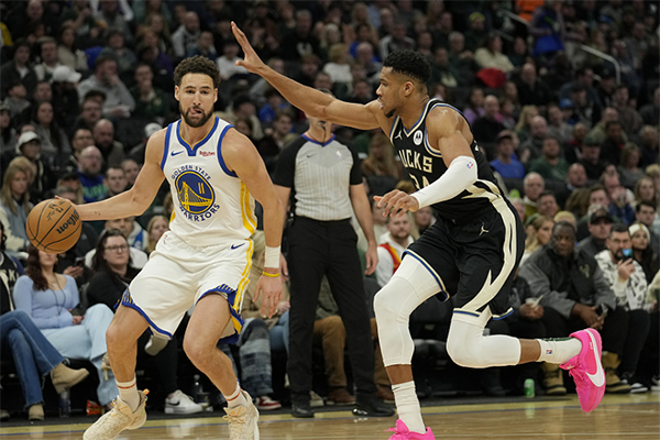 末节,勇士和雄鹿继续对飚,库明加三分对飚米德尔顿,字母哥不断冲击篮筐,比斯利输送三分,再加上勇士接连失误,4分21秒雄鹿领先到9分;看到勇士陷入困境,汤普森连续命中2记续命三分,米神迎着克莱轰进强硬三分还造犯规,可惜罚球不进,波杰突破上篮,大洛二次进攻得分,字母空接背扣,克莱续命三分打铁,大洛三分和字母哥暴扣杀死比赛,最终雄鹿拿下比赛。