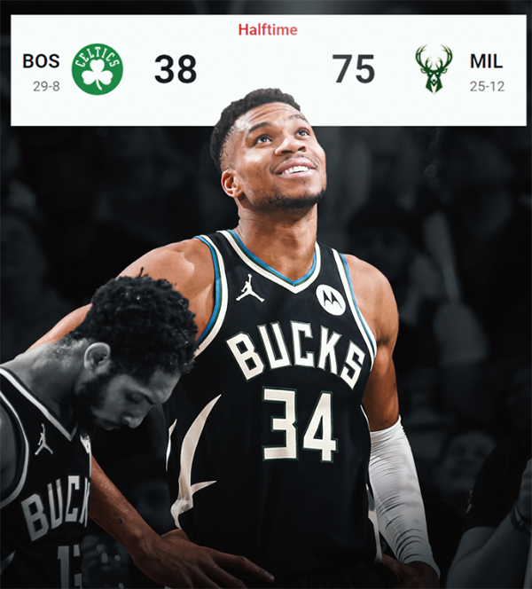 雄鹿创纪录——上半场赢37分创队史第四大半场赢分纪录