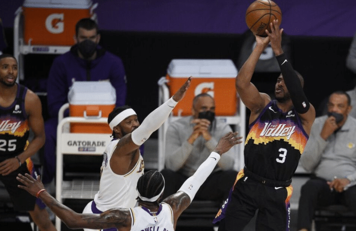 目前湖人排在西部第七,进前六基本不可能,如果顺利拿到季后赛入场券他们很可能将面对太阳队,目前来看黑七不是不可能!内线占据绝对的优势,也能为外线射手制造投篮空间,太阳没有太强硬的内线,只能更多依靠三分和攻守转换,还有就是布克保罗的中投,期待这样的对决!