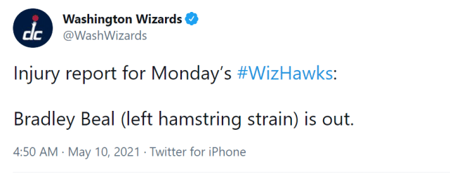 对于比尔来说,目前安心静养是最佳选择,毕竟,奇才32胜36负,排名东部第九,已经领先排名第11位的公牛3.5个胜场,相当安全。他们的最重要目标是通过附加赛获得一张季后赛入场券。奇才还有机会争取第八的位置,但无论排名第几,他们都需要健康的比尔。休战一场,每日观察,是奇才官方的计划。