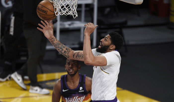 24直播网讯 今天NBA常规赛结束了一场焦点战,湖人123-110击败太阳,拒绝被对手横扫的同时完成了复仇。这样他们结束连败的同时继续保持对于第六名开拓者的压力,两队都剩下4场比赛,湖人需要比对手多赢2场才能够直通季后赛。今天的这场比赛,詹姆斯、库兹马和施罗德都无法出战,浓眉哥单核带队表现抢眼,他全场砍下42分12篮板5助攻3抢断3盖帽,正负值+26全场最高,得分创纪录,个人赛季新高不论是进攻端还是防守层面,浓眉哥的表现都堪称完美,一肩挑带队取得胜利。