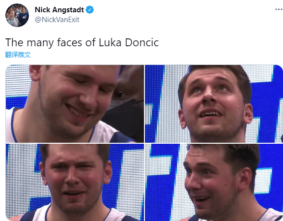 当时东契奇第一反应是瞪大双眼,一脸不敢相信的表情,此事引热议,名记晒出东契奇一系列表情变化,瞪眼、吃惊、苦笑等等,瞪眼表情已成为表情包。