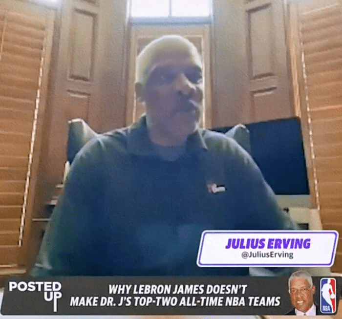 24直播网讯 北京时间4月28日,据美媒爆料,NBA名宿J博士欧文在一档视频连线访谈节目中,谈到了自己心中的超级阵容,并调侃了詹姆斯!