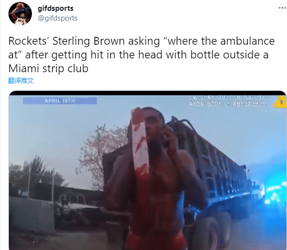 24直播网讯 此前火箭球员斯特林-布朗在夜店外惨遭殴打,面部多处被划破,到处都是血迹;如今布朗被殴打后画面曝光,赤裸上半身、用毛巾捂着受伤的脸,独自打电话叫救护车,这画面真是太凄凉、太狼狈。