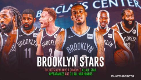 美媒ClutchPoints报道,数据统计,目前,篮网球员总计41次入选全明星,31次入选NBA最佳阵容。阵容中有2状元(欧文格里芬)2榜眼(阿德杜兰特)1探花(哈登)光从天赋上看就是如此可怕,如果都在巅峰期他们是不可能一起打球的,但即使现在也给人感觉像全明星战队一样!