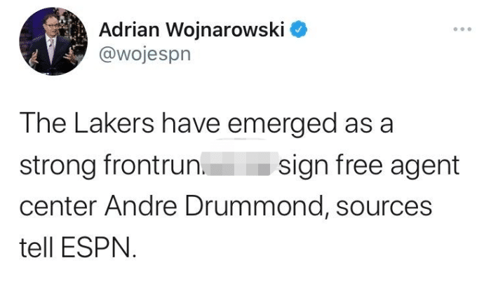 据名记沃神爆料多位消息人士透露,湖人成为两届全明星中锋德拉蒙德争夺战的强有力领跑者。德拉蒙德将在北京时间周一凌晨5点度过澄清期、成为自由球员,而在这之前他已经承诺会加盟湖人队了最近一直在洛杉矶训练,这一点连竞争对手凯尔特人都已经承认!