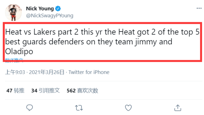 别忘了,目前热火还是阿尔德里奇最有可能的下家,一旦阿德确定加盟迈阿密,他们的阵容将进一步升级!自由球员尼克杨就发推表示热火会连续第二年在总决赛和湖人相遇!