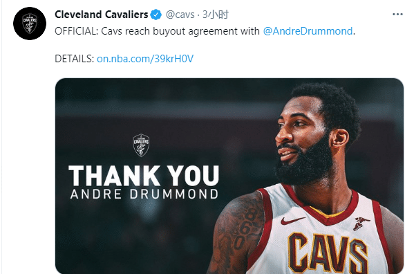 24直播网2月27日讯 交易不成只能宣布买断,克利夫兰骑士已经官宣买断德拉蒙德的合同,并且发推写道:谢谢你,安德鲁-德拉蒙德!
