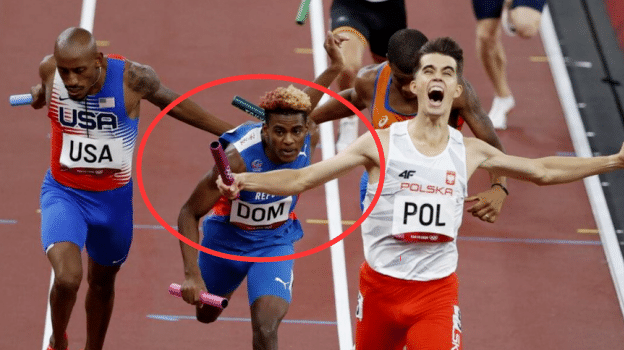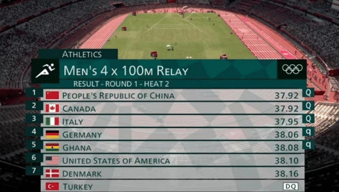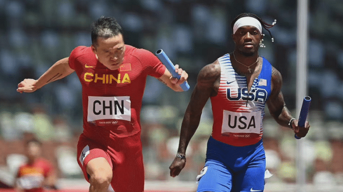 2020东京奥运会,美国队交接棒失误,无缘决赛。