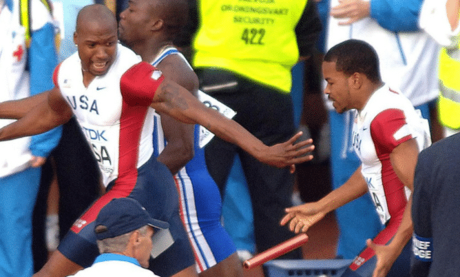 2008年北京奥运会,美国队交接棒失误,他们在预赛直接掉棒,无缘决赛;