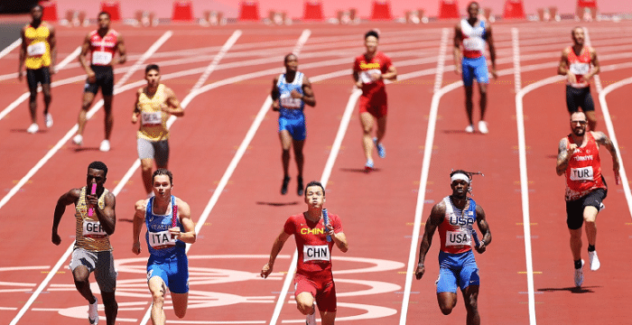这场比赛中国接力队真的是杀疯了,其中在第三道的苏炳添成为关键,他处于弯道的第三道,比赛中谢震业和苏炳添完美交接棒,然后苏炳添开始了加速狂奔,直接在弯道加速超车,确实太猛了,也为第四道的吴智强建立优势。