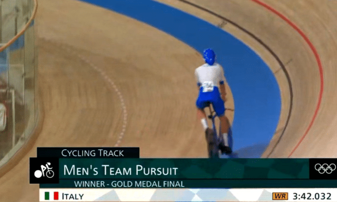 一直到最后1公里,意大利队还落后0.6秒,这个时候解说都开始提前说祝贺丹麦队拿下金牌的时候,但没想到神奇的事情发生了。