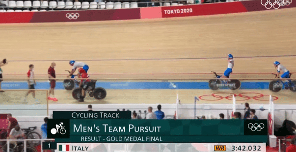 成绩定格在3分42秒032,意大利队还直接打破了世界纪录,成功翻盘丹麦队,在这场惊心动魄的比赛中拿下冠军。比赛结束之后,意大利的教练团队疯狂庆祝,他们拿下了这一枚宝贵的金牌,比赛的过程也是惊心动魄,非常的扣人心弦。