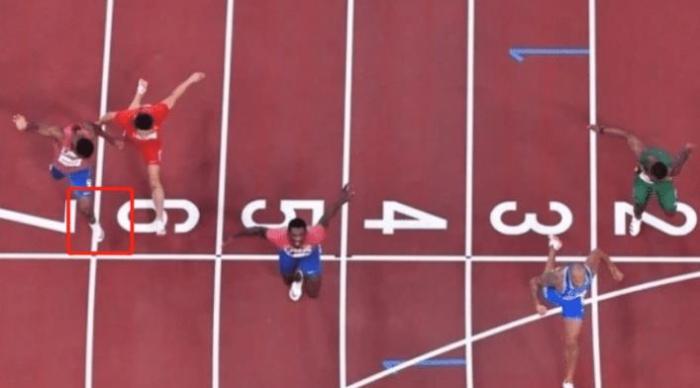 为什么呢?在决赛冲刺阶段,美国选手布克的脚越线,摆动的手臂不仅打到了苏炳添,而且还横在苏炳添的面前,显然这个动作不仅违规,还大大影响了苏炳添冲刺的速度,这也让苏炳添错失提升成绩甚至是冲击奖牌的机会。