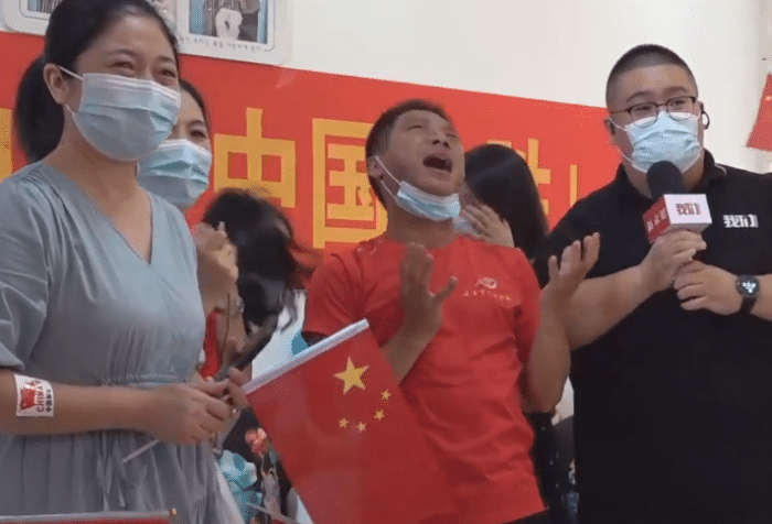 管晨辰的父亲极度喜悦,他随后直接抱起了管晨辰的妈妈,两人激动拥抱,庆祝这枚金牌。随后,管晨辰的爸爸直接落下了眼泪,抱头痛哭,还冲向电视机“拥抱”女儿。而管晨辰的妈妈此时也已经热泪盈眶,说不出话来!此时,管晨辰的家已经沸腾了,亲友们也都纷纷落泪。而管晨辰父母的电话也不断响起,纷纷祝贺他们的女儿夺金!
