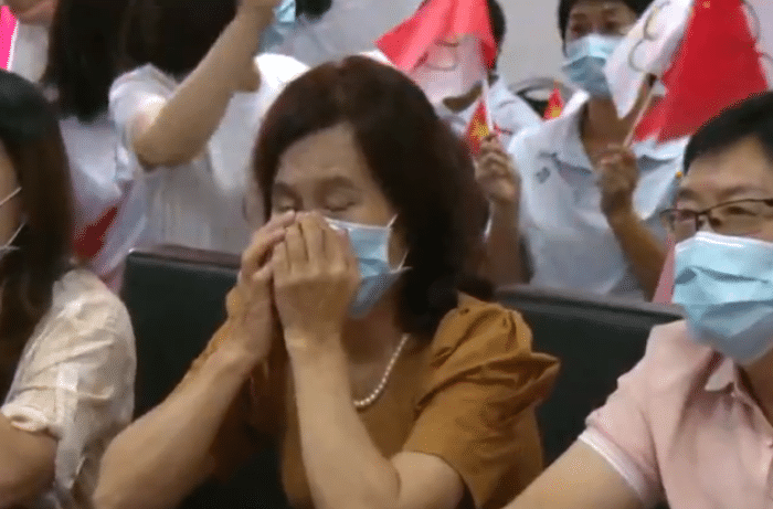 这场比赛,谢思埸的家人在广东汕头观战。比赛过程有些波澜不惊,但对于谢思埸的家人们来说,当谢思埸夺冠的一刻到来时,他们还是难以抑制自己内心的激动。谢思埸的妈妈和姐姐,都哭了。现场则彻底沸腾了,几乎所有人都挥舞国旗庆祝。