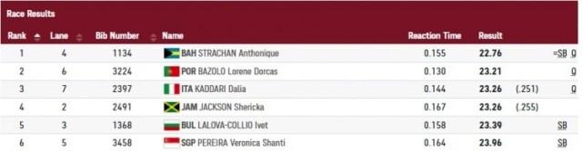预赛中,谢瑞卡分在第5组出场,根据规则每组前三名将进入半决赛。预赛中,谢瑞卡一直都处于领先位置。到了最后50米,杰克逊前面也只有一位选手,如果她全力加速冲刺肯定可以晋级。