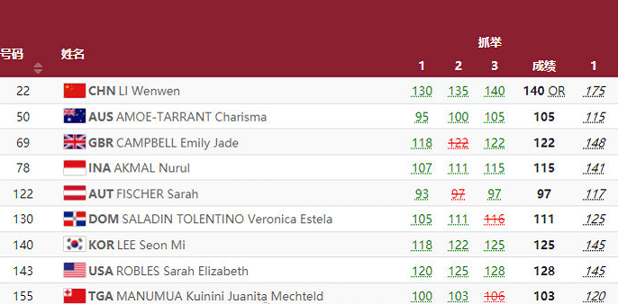挺举,李雯雯162成功的,锁定金牌。第二把173成功,第三把180公斤,也成功,新的奥运会纪录诞生。