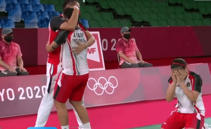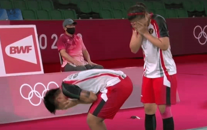 赛后,印尼组合非常激动,她们扔掉球拍激情庆祝,两人都喜极而泣,纷纷抱头掩面痛哭。两人实在太激动了,哭声响彻了整座场馆。而陈清晨/贾一凡则只能相互拥抱安慰。对于陈清晨/贾一凡来说,这次奥运会她们的表现已经非常不错,击败头号种子,只可惜最后就差一步。