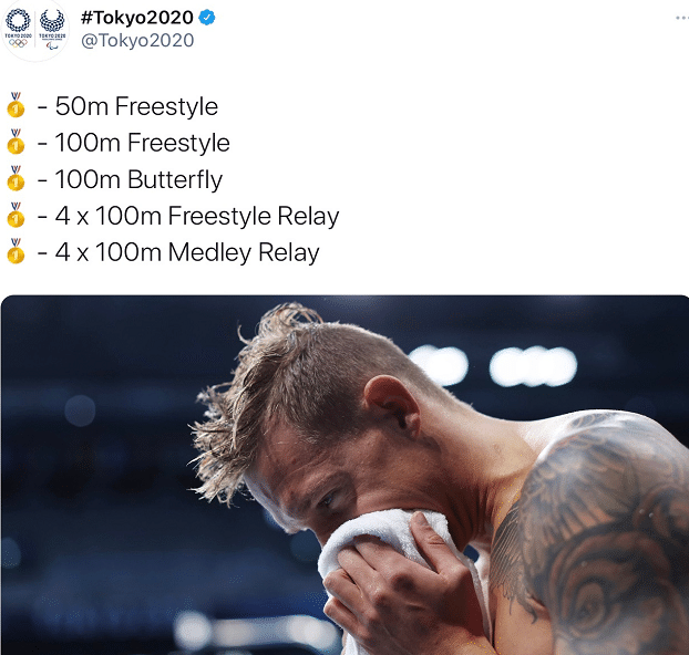 24直播网讯 要说谁是本届奥运会的最大赢家?相信很多人都会谈到德雷塞尔,东京奥运会游泳项目已经落下大幕,德雷塞尔斩获了5枚奥运会金牌,成为泳池内最耀眼的明星。同时德雷塞尔还打破了4项纪录,其中就包括2项奥运会纪录和2项世界纪录。