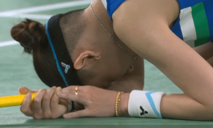 24直播网讯 北京时间8月1日,奥运会羽毛球女单决赛结束争夺。最终中国选手陈雨菲爆冷2-1击败世界第一戴资颖,代表中国队时隔9年重夺奥运女单金牌!赛后,陈雨菲跪地庆祝,而戴资颖则倒地绝望。