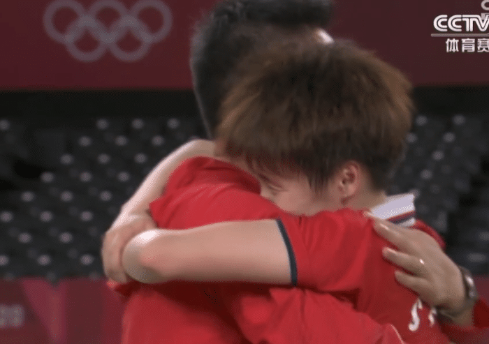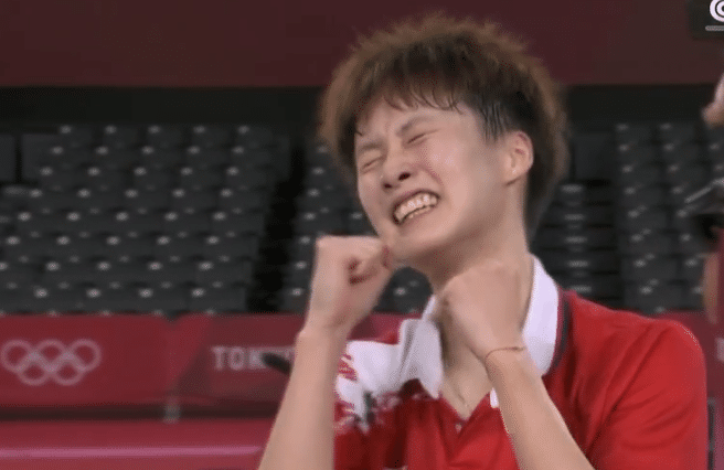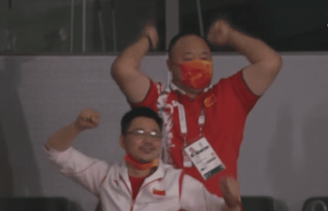获胜一刻,陈雨菲跪地握拳疯狂庆祝!而对手戴资颖,则轰然倒地抱头沮丧。随后,陈雨菲和教练激动拥抱,看台上的张军和夏煊泽也握拳庆祝!对于这位23岁的小姑娘来说,她代表中国夺回了女单金牌,属于她的时代,来了!