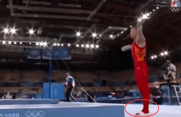 不过事情到了今天,再次发生反转,一段比赛录像还原了最后时刻发生的一切,在肖若腾完成动作后并未向裁判示意,直接走下了台,随后他可能想起了这个环节,于是穿着拖鞋重新上台向裁判进行示意了。