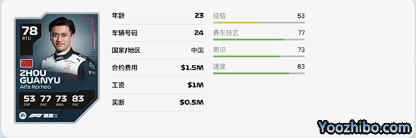 2022车手能力值更新:周冠宇78分,和之前持平