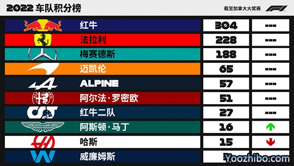 2022赛季F1世界一级方程式锦标赛车队积分榜
