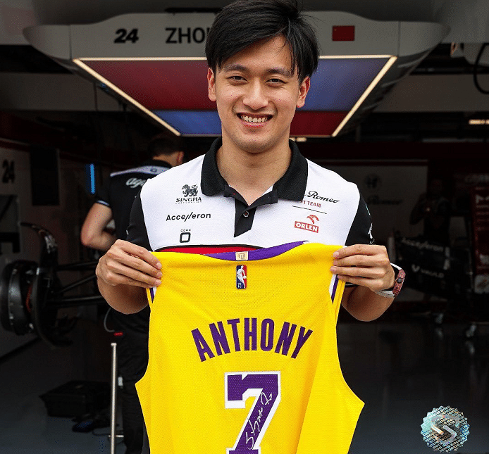 周冠宇一直都钟情于湖人,他现在的赛车也有湖人有很大的关联,周冠宇最喜欢的NBA球星是科比,一人一城,职业生涯全部奉献给了湖人。周冠宇目前的F1赛车上也有致敬科比元素的“24”号涂装。包括车号的选择和头盔的设计等等,都有很多湖人和科比的元素。周冠宇接受采访的时候表示自己是湖人的球迷,头盔颜色也选用过紫金配色,此前在F2的时候就有过很多的尝试和不同的搭配。