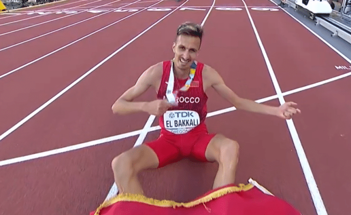 身后的吉尔马虽然穷追不舍,但只能目送巴卡里越跑越快。最终,巴卡里以8分25秒13的成绩夺冠。事实上,这一成绩并不好,甚至不如预赛。对于经常跑进8分钟内的高手来说,这甚至是一个不屑一顾的成绩。但这就是世锦赛,冠军和金牌压倒一切!