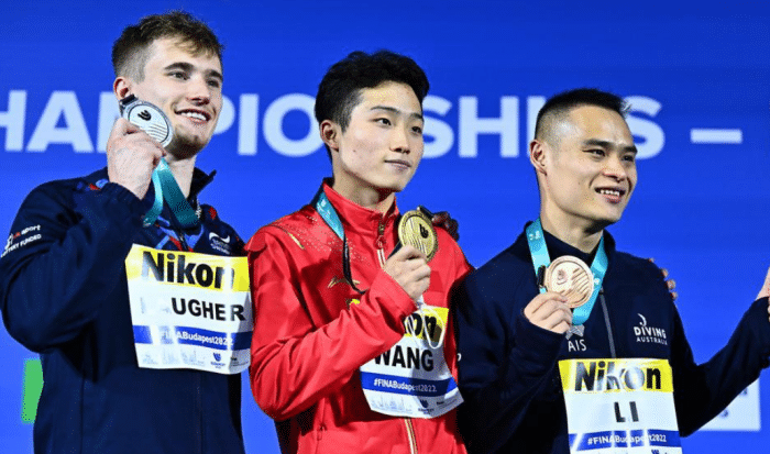 王宗源在男子1米板项目上也强势夺冠!在预赛中,意大利选手爆冷排名第一。不过来到决赛,王宗源没有给对手任何机会。6个动作,王宗源拿到了5个第一名!最终,王宗源拿到493.30分,领先第二名多达66.35分。凭借这枚金牌,王宗源在本届赛事成为三冠王!此前,他已经拿到男子单人和双人3米板的金牌。另一名中国小将郑九源发挥失常,排名第8。