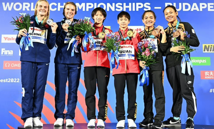 24直播网07月01日讯 ,世界游泳锦标赛结束了倒数第4日的争夺。中国军团单日再夺2枚金牌,最新的金牌总数已经来到14枚。全红婵/陈芋汐在女子双人10米台无悬念夺冠,而王宗源同样在男子单人1米板上强势夺金。目前,距离中国队包揽所有13枚跳水金牌,已经只差4个项目。最新金牌榜,美国17金领跑,中国14金疯狂追击!