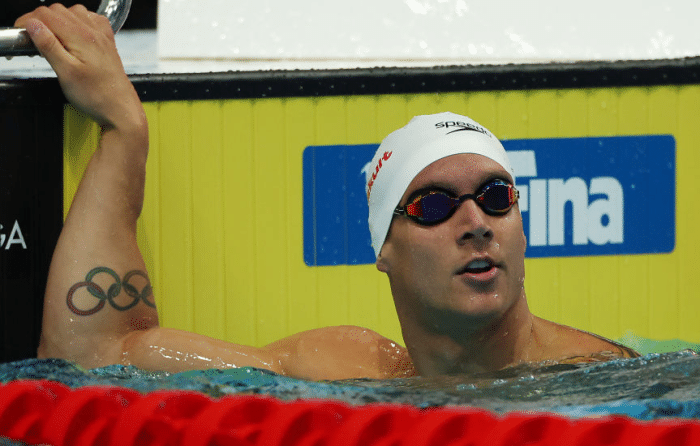 美国再度成为这个比赛日的大赢家!他们获得了4枚游泳项目金牌中的3枚。德雷塞尔在50米蝶泳决赛中,以22秒57的成绩成功卫冕,夺得本届世锦赛个人第2金。女子200米混合泳,美国选手沃尔什2分07秒13夺金。而在女子100米蝶泳项目上,美国选手赫斯克以55秒64夺冠。单个比赛日,美国再夺3金3银。