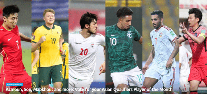 24直播网讯 近日亚足联官网评选“亚足联月度最佳球员候选”,其中入选的一共有9名球员,分别是武磊(中国)、马瓦斯(叙利亚)、阿兹蒙(伊朗)、苏塔尔(澳大利亚)、南野拓实(日本)、萨勒姆(沙特)、法瓦兹(阿曼)、马布霍特(阿联酋)和孙兴慜(韩国);